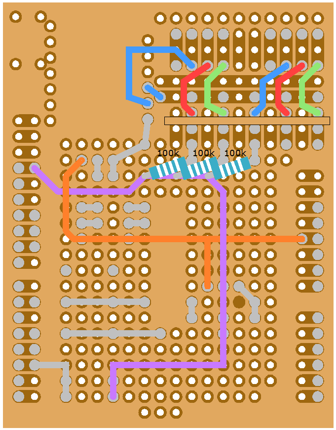 Nachdem ich alles auf einer Conrad-Testplatine gesteckt und probiert hab, wird es dann auf die echte Platine gelötet und an die LED-Streifen angeschlossen.
